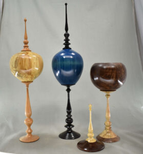 Learn how to make a grain matched box that sits on thin pedestal with a finial on top. I use spindle turning tools, bowl gouges and a small goose neck hollower for this demo.